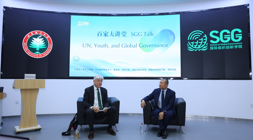会见后,学校举办了“联合国、青年和治理”对话,对话由威廉体育williamhill常务院长、管理学院副院长刘浩主持,学生与霍克希尔德围绕联合国的历史成绩、未来改革和挑战,全球安全治理发展态势和全球南方的机遇,青年人参与全球治理的能力和机遇,科技全球治理和跨学科复合型人才需求等进行了坦诚深入交流。校学生工作部副部长史建伟,学生工作部副部长邓岩,教务部副部长赵昊,研究生院培养办公室副主任曹鹏,学生服务中心主任徐贵宝,学生就业指导中心主任管帅华,副主任刘远成,留学生中心副主任刘伟光,校团委志愿工作部部长赵静,学生工作部干部王雪,管理学院党委书记颜志军,管理学院副院长关宏,威廉体育williamhill院长助理张弛,管理学院学生工作办公室主任陈楷元等出席活动,来自管理、法学、信息、自动化和宇航等不同学科背景的中外学生一同参加交流。