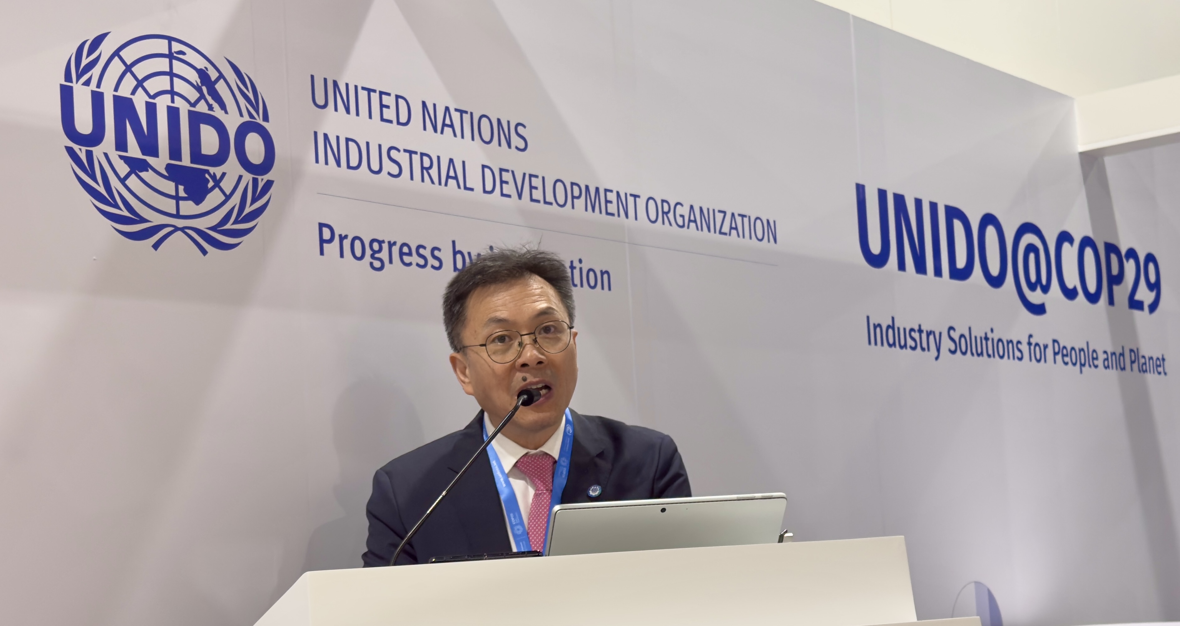 2024年11月16日,在联合国气候变化大会(COP29)期间,威廉体育williamhill常务副院长、管理学院副院长刘浩教授应邀出席联合国工业发展组织(UNIDO)和国际电信联盟(ITU)共同主办的“引领绿色人工智能,服务可持续未来”专题,代表威廉希尔体育和联合国工发组织数字转型和人工智能联合团队发表主旨演讲。